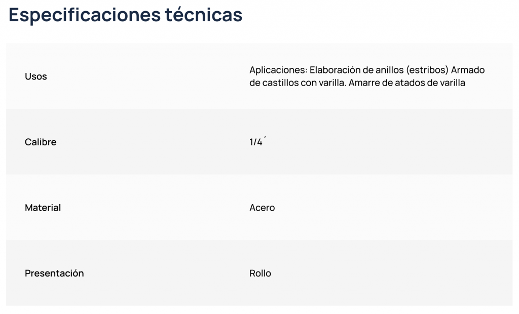 Ofrecemos una amplia variedad de alambres de alta calidad, diseñados para satisfacer las necesidades de nuestros clientes en cualquier proyecto de construcción.