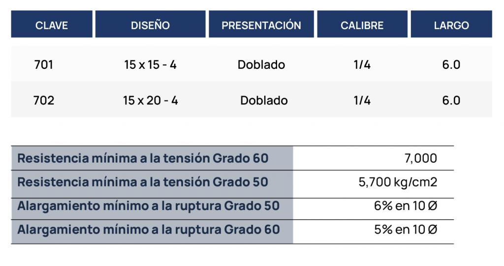 Son estructuras que se fabrican con varillas longitudinales corrugadas grado 60 y por estribos lisos grado 50, todos laminados en frío.